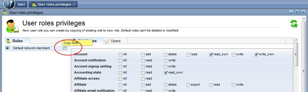Navigate to Merchant Panel > Start > Tools > Roles. Create a copy of an existing role and select All privileges for every row. A merchant assigned this role will have the same privileges as a network owner.