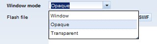 * window (default) - Flash will be placed on top of everything in "its own window"