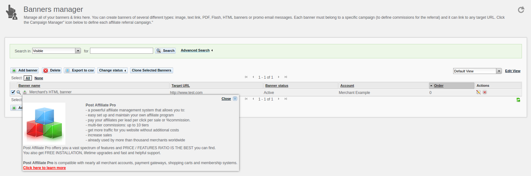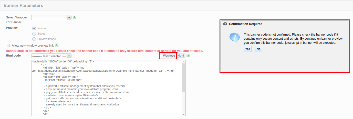 Securing HTML Banners with Banner Confirmation in Post Affiliate Network
