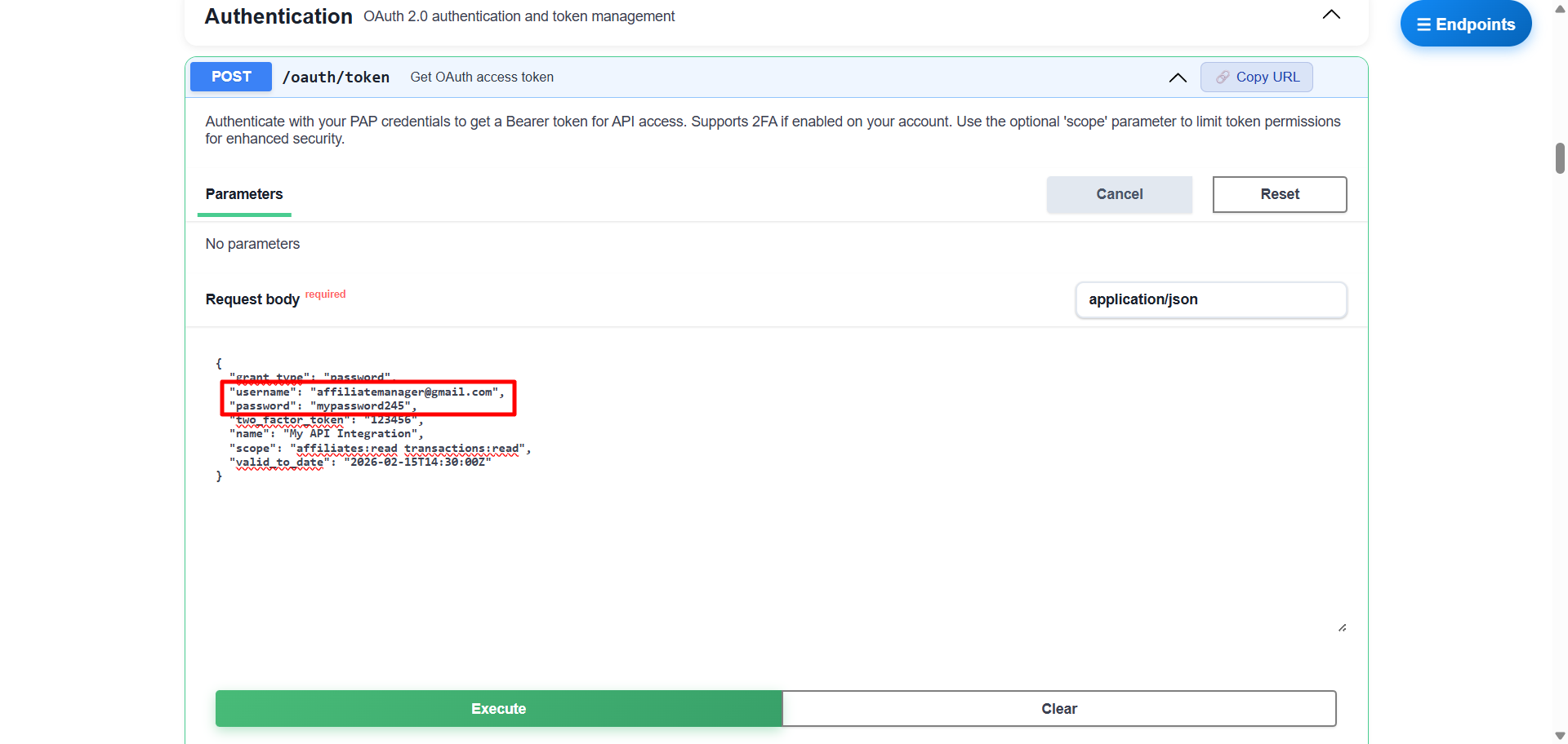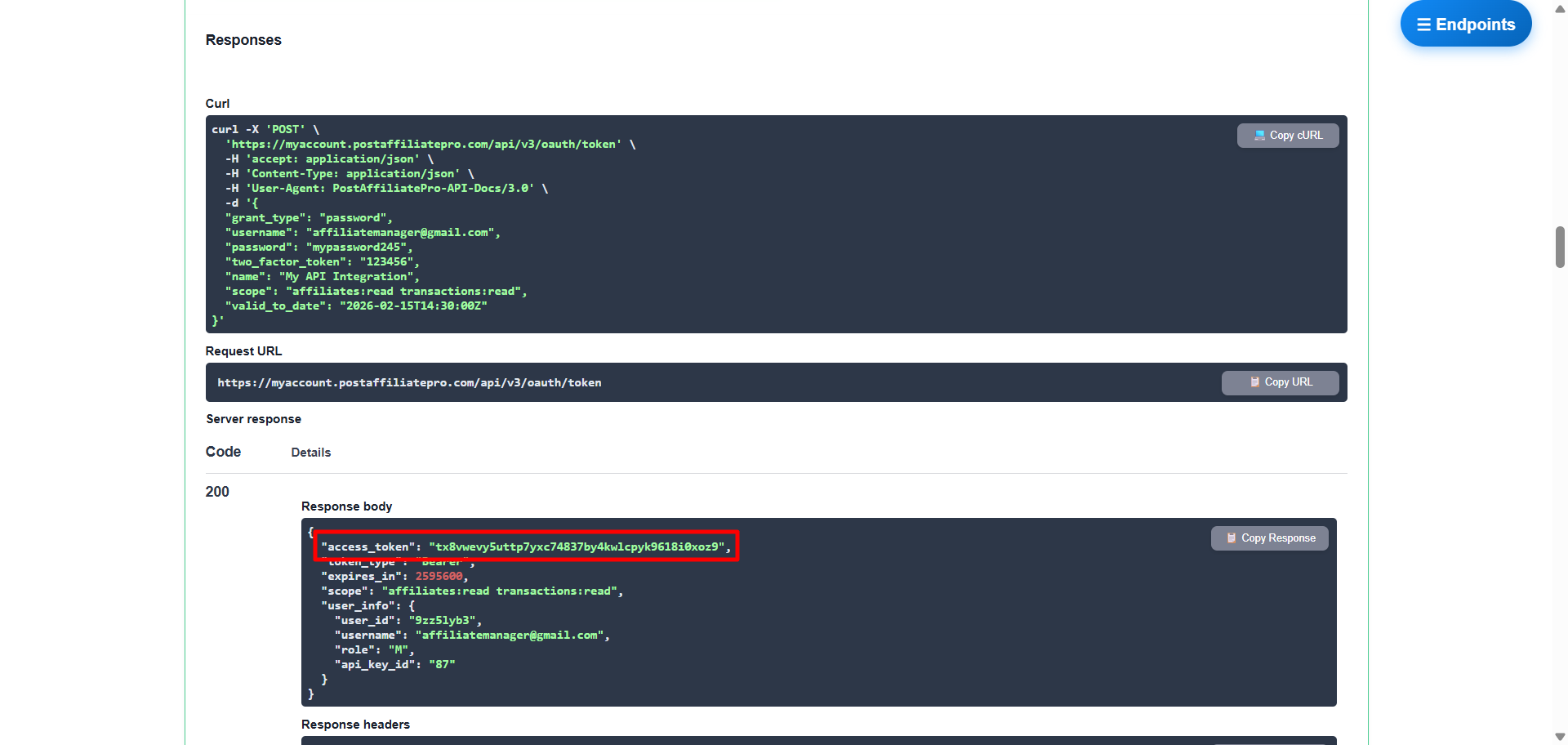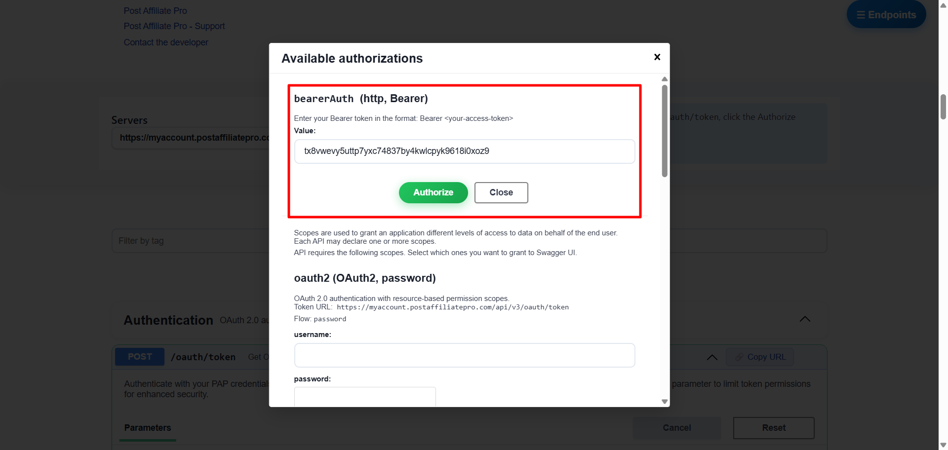 This article explains how to create an OAuth 2.0 access token in the Post Affiliate Pro API v3 (REST API) documentation and use it for authentication directly from your browser.