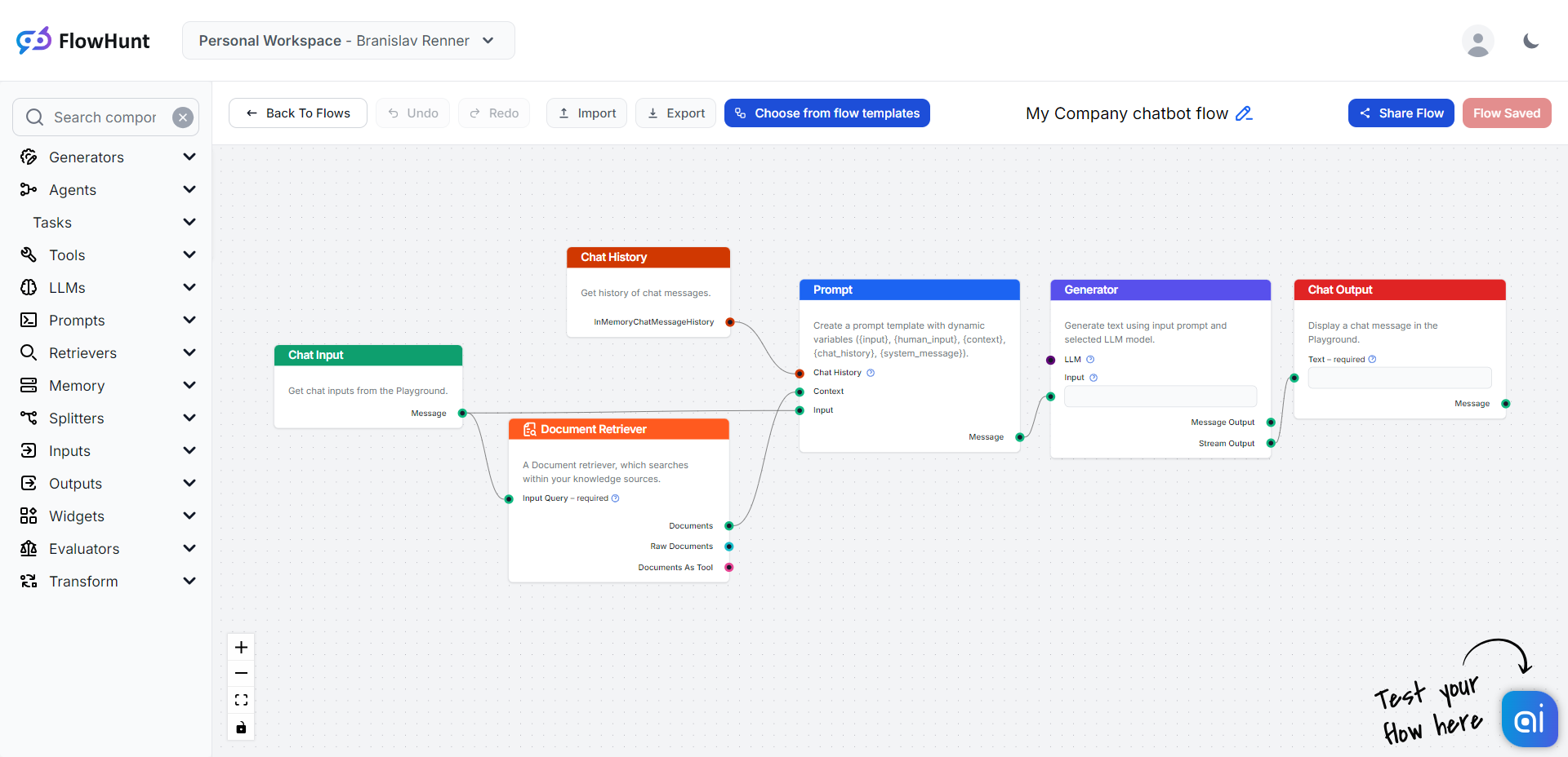 Once you apply the template, your flow will be created and saved. No further adjustments are needed. However, users with FlowHunt experience are welcome to customize it further.